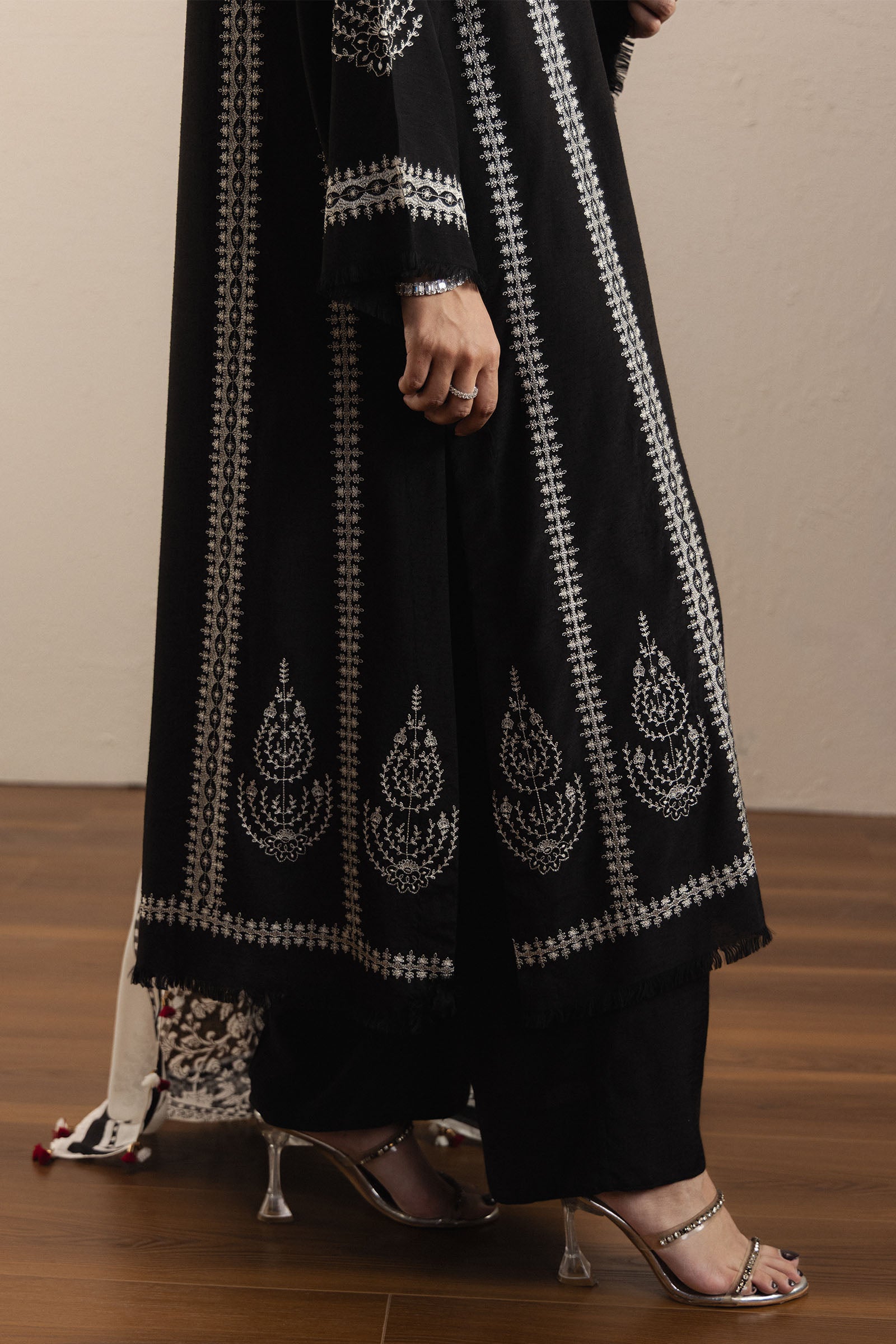 A block-printed medium silk dupatta completes the ensemble, offering a harmonious interplay of texture and color that enhances the kurta’s intricate detailing. Nafasat reflects Zara Shahjahan’s philosophy of blending traditional craftsmanship with elegant silhouettes, creating enduring festive wear that celebrates artistry, sophistication, and understated charm.