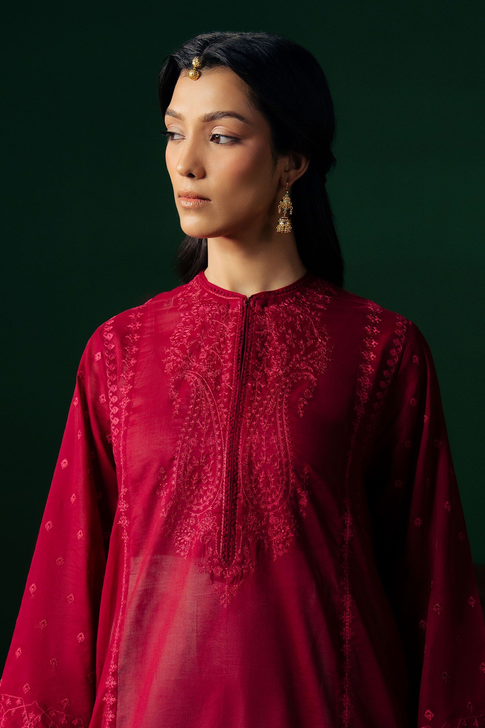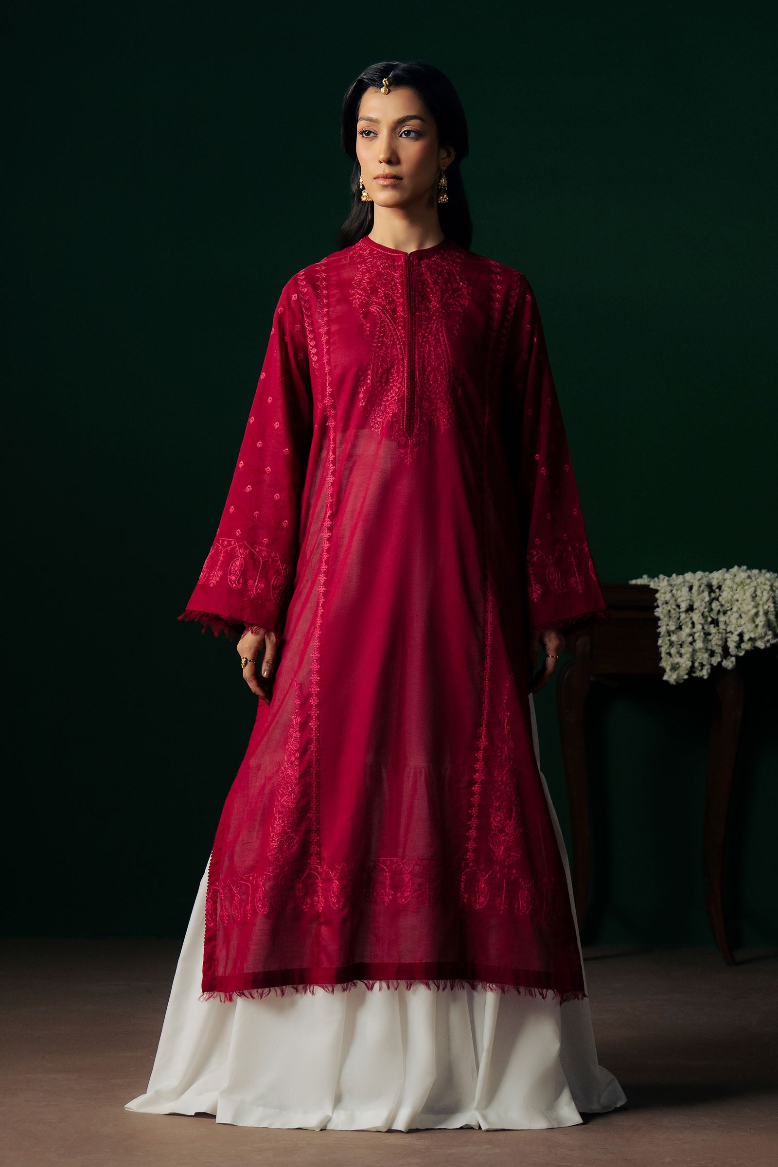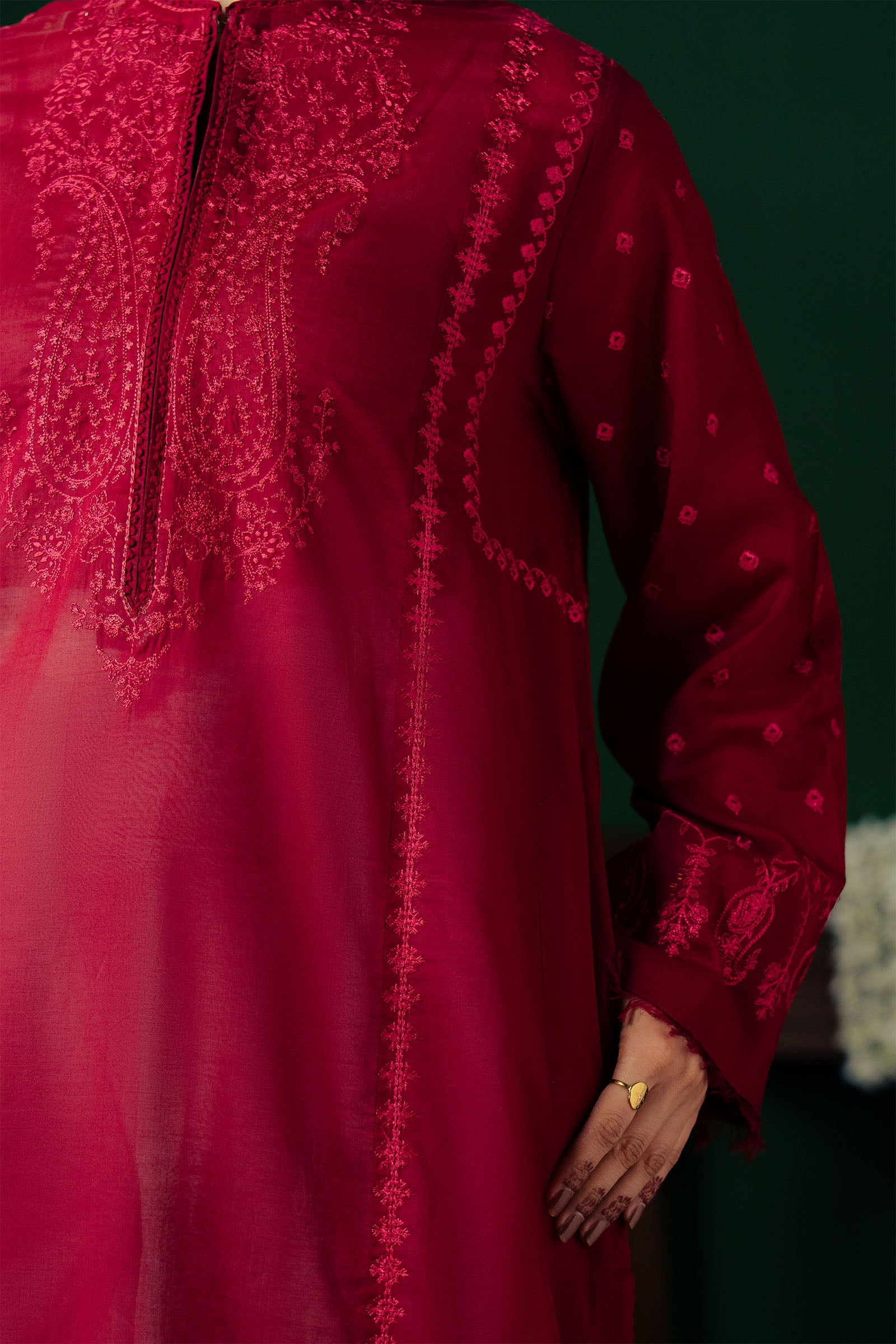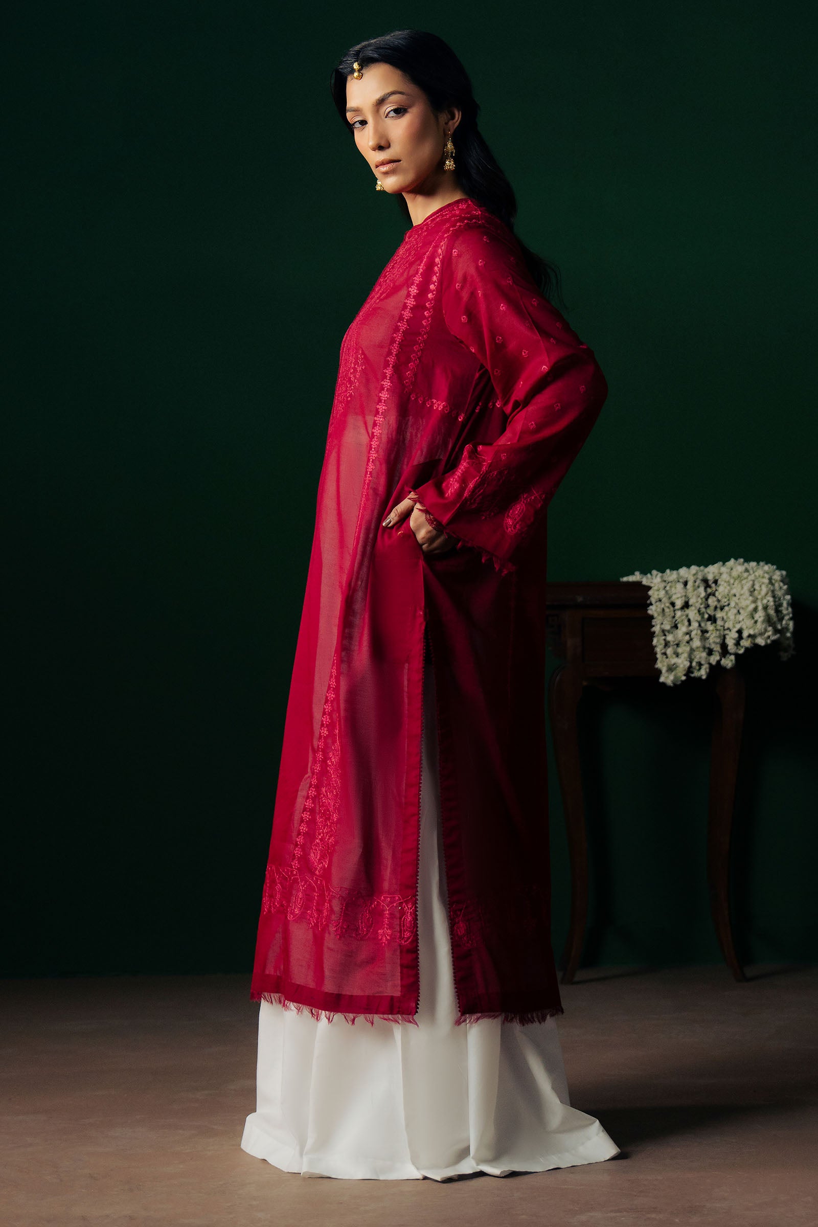 Qamar is a 3-panel kurta in rich maroon, thoughtfully designed for understated sophistication. The monotone Kashmiri-style embroidery adds texture and depth while keeping the overall look balanced and refined. Delicate motifs highlight artisanal craftsmanship without overpowering the design, making this piece perfect for those who appreciate quiet luxury.