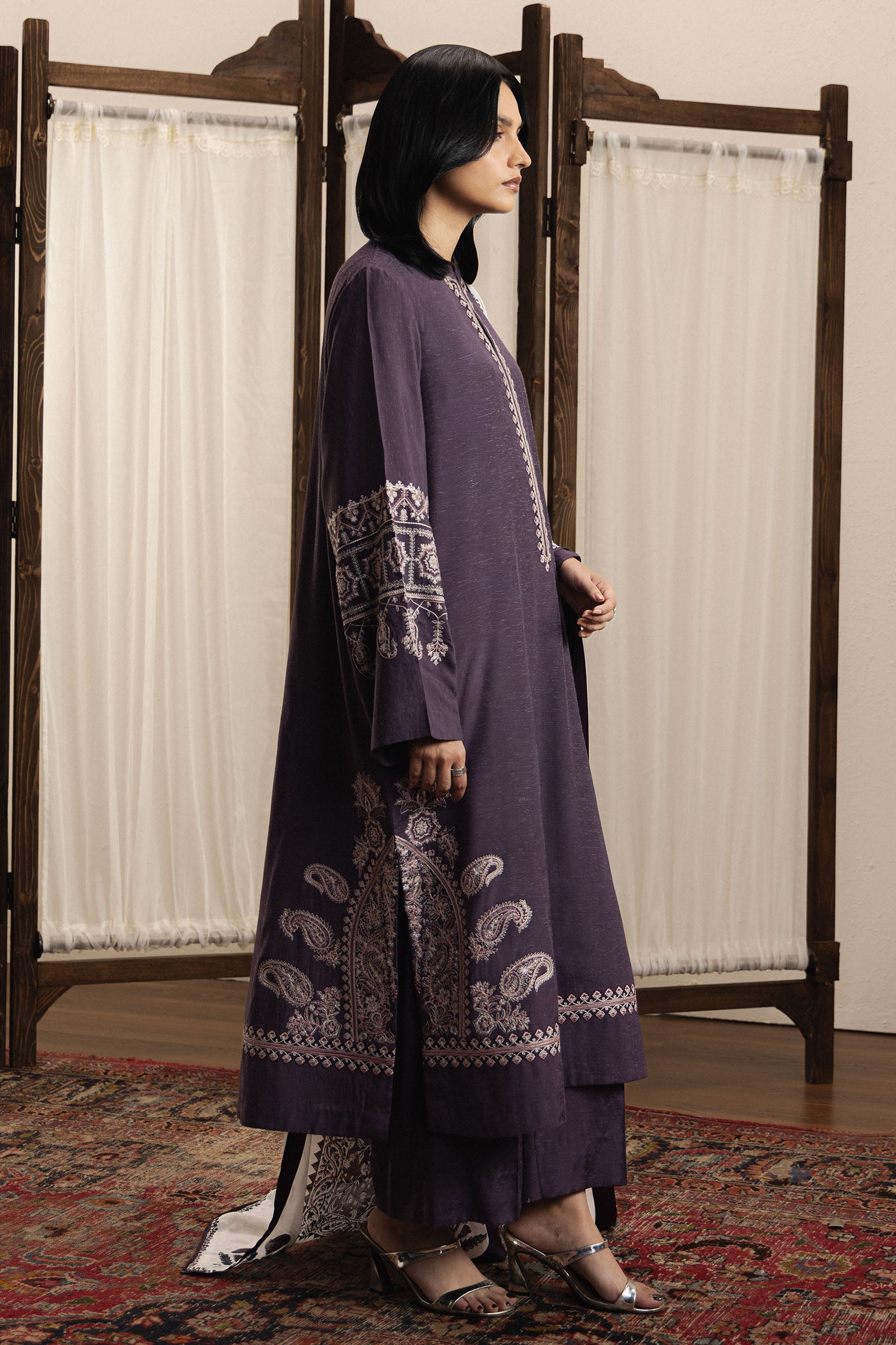A contrast block-printed medium silk dupatta completes the look, adding a vibrant accent that harmonizes beautifully with the kurta’s minimalistic embroidery. Lehja embodies Zara Shahjahan’s philosophy — where simplicity meets refinement, creating festive wear that is timeless, elegant, and effortlessly graceful.